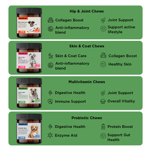 This product is intended for use in dogs only. If your dog’s condition worsens or does not improve, discontinue use and consult your veterinarian. A veterinary exam is recommended prior to starting any new supplement regimen. Keep out of reach of children and pets. Not for human consumption. In case of accidental overdose, contact a health professional immediately. Do not use if the safety seal is broken or missing. Store in a cool, dry place.